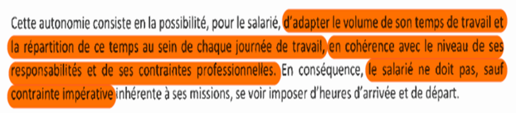 • Mais surtout, dispose d’une AUTONOMIE dans son organisation du travail, comme indiqué dans notre accord :
