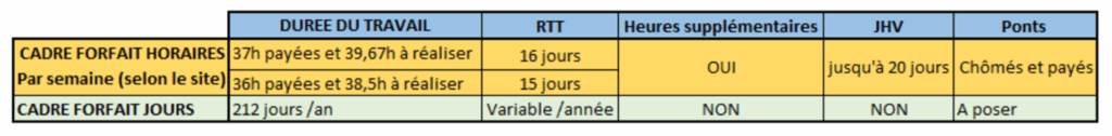 • Sur certains périmètres où cela existe encore (groupe fermé), voit sa rémunération réévaluée de +2,5% ou +3,5% selon le site. (lors d’un passage Forfait Horaires à Forfait Jours)