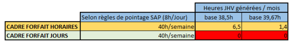 Ainsi, de nombreux salariés Forfait Horaires, mensuels ou cadres, ont atteint leur plafond de 20 JHV annuels, certains depuis octobre.